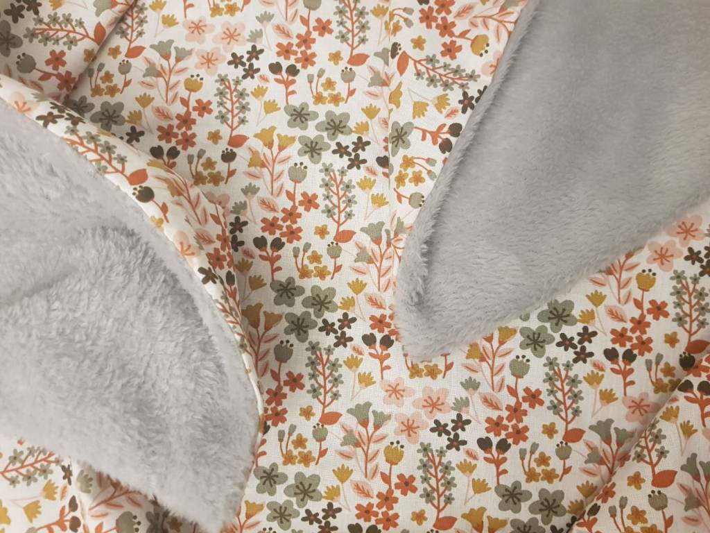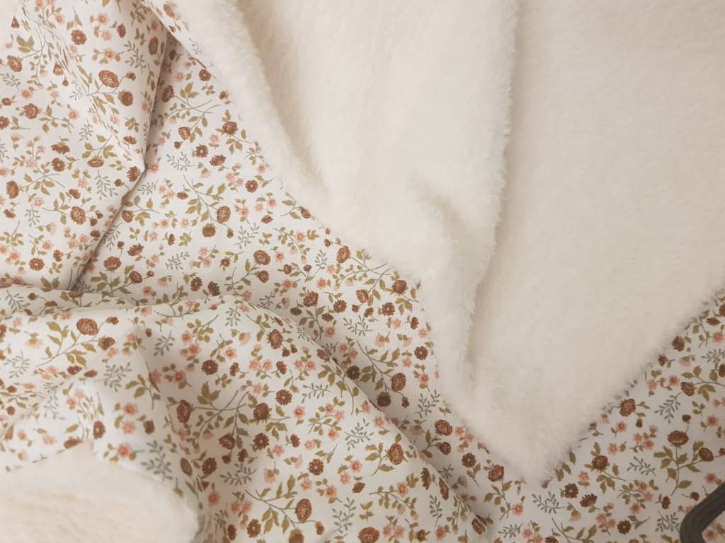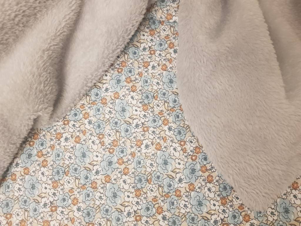 Por un lado estampado de algodón a elegir y por el otro tejido de coralina.